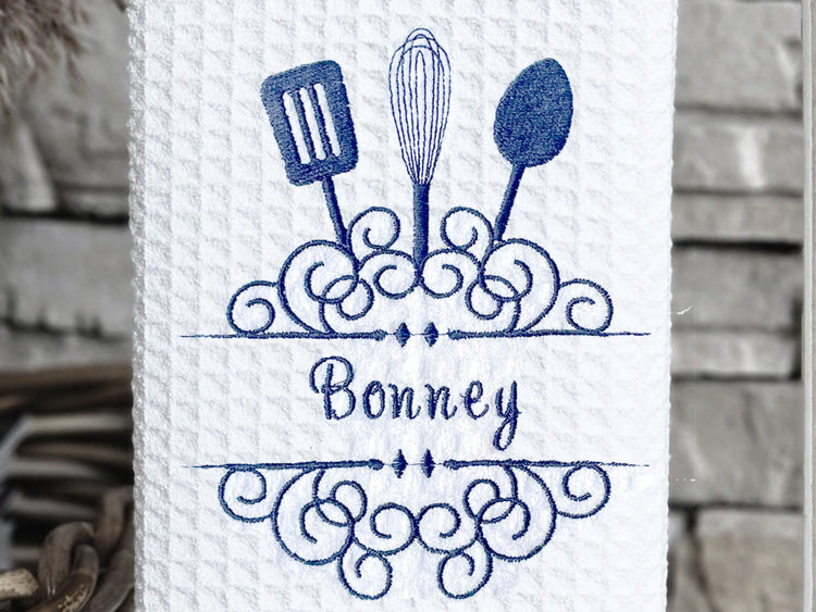 Custom Embroidered Kitchen Towel – Utensil Design