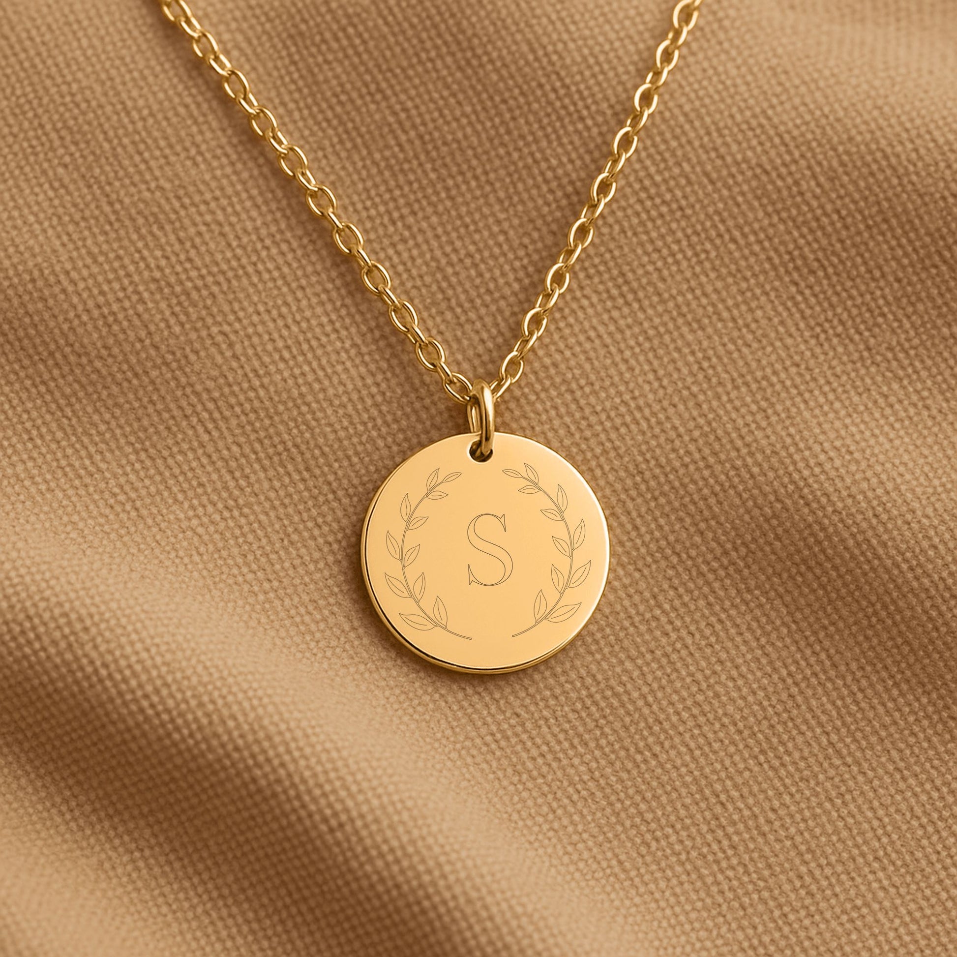 Personalized Laurel Initial Coin Necklace